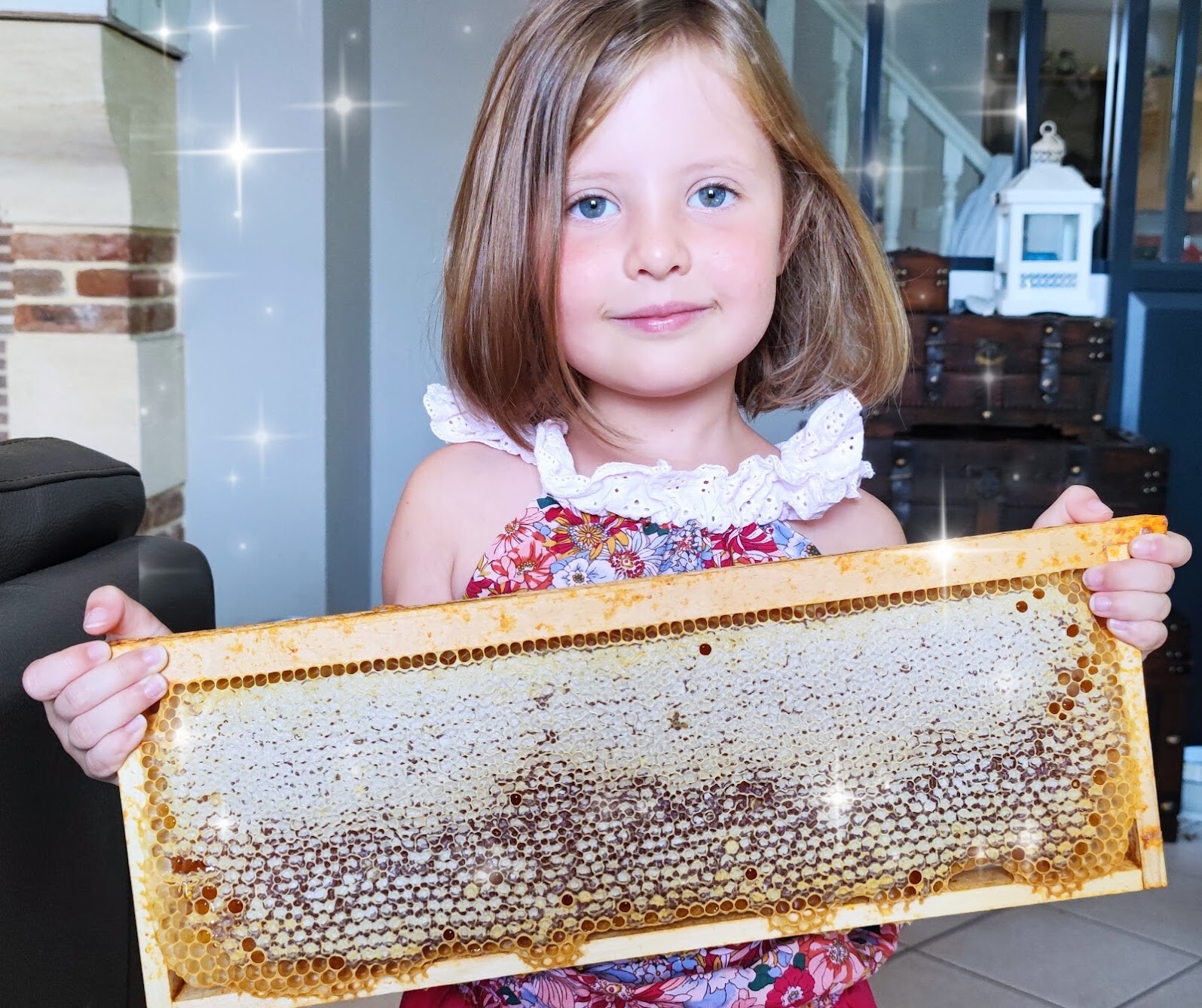 Galerie photos Capucine et un cadre de miel Capucine Chris Apiculteur professionnel Miel de producteur local Articles similaires Share
